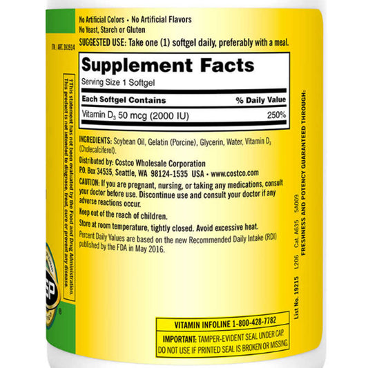 Kirkland Signature Extra Strength D3 50 mcg., 600 Softgels