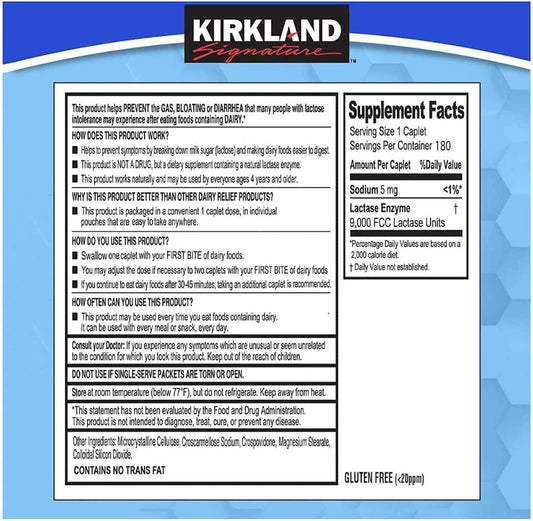 Kirkland Signature Fast Acting Lactase - 180 Caplets